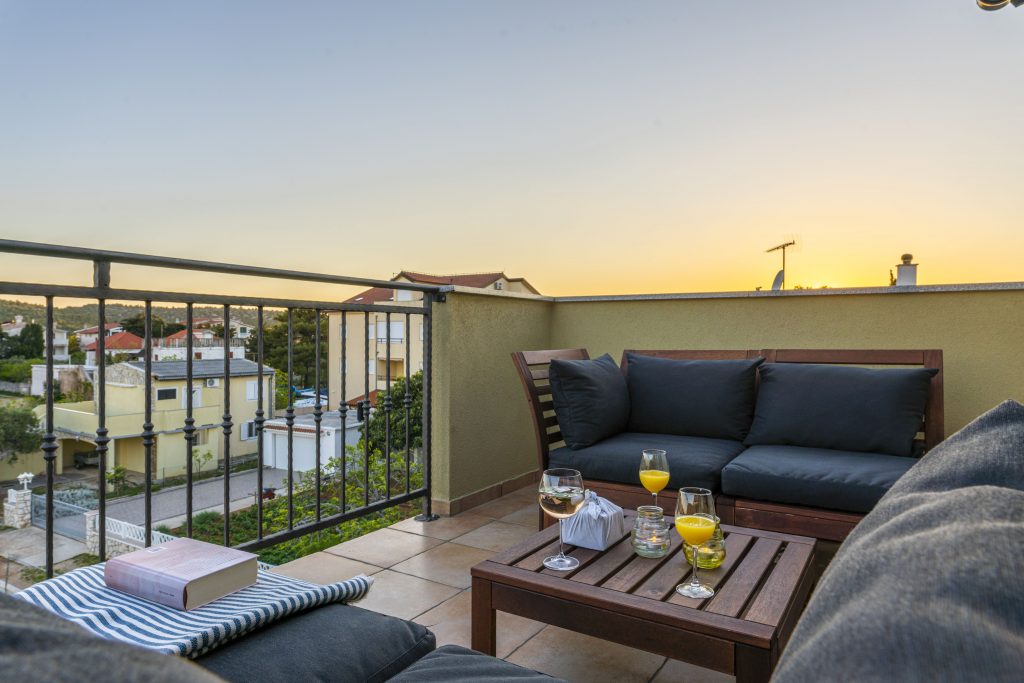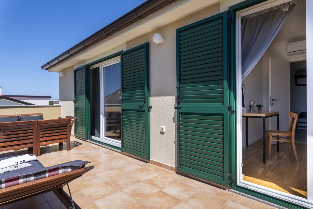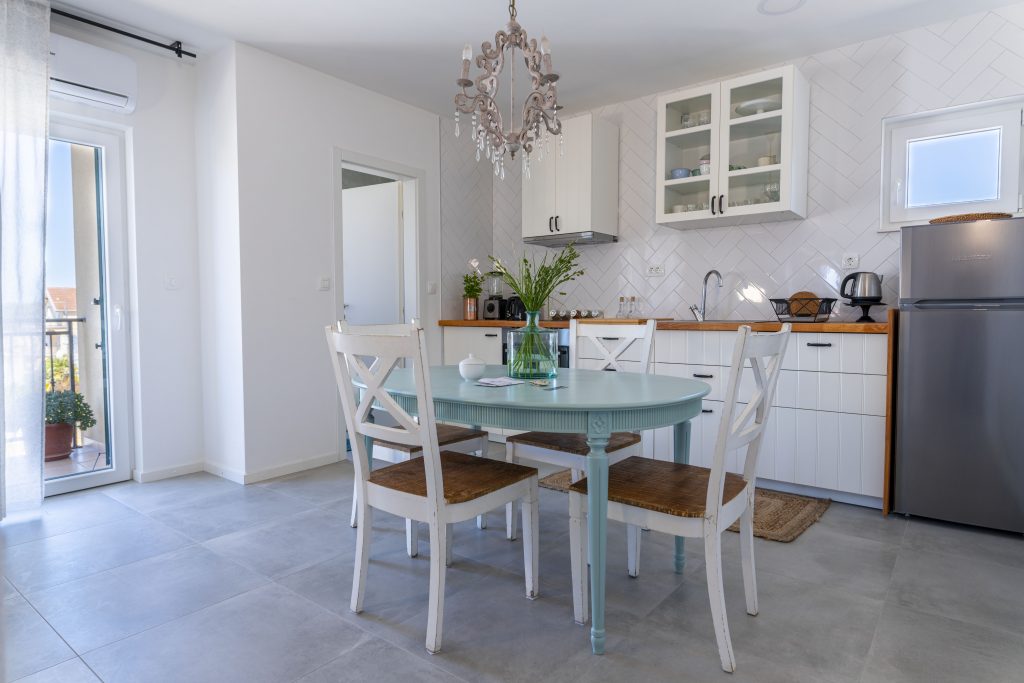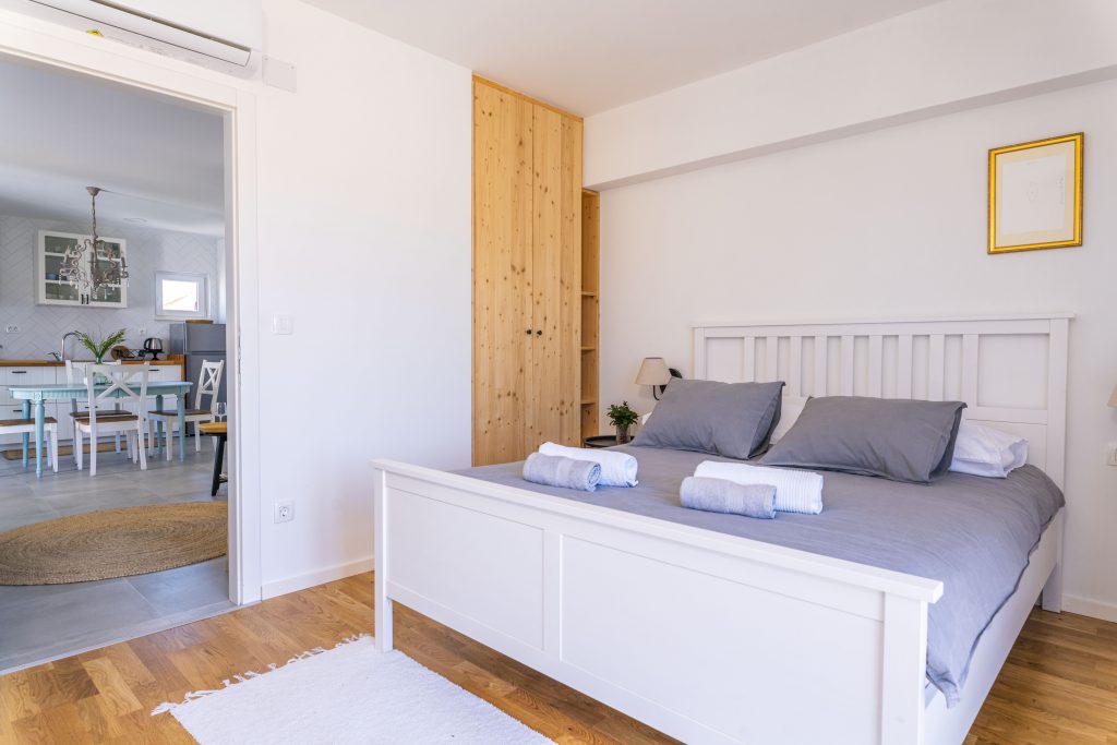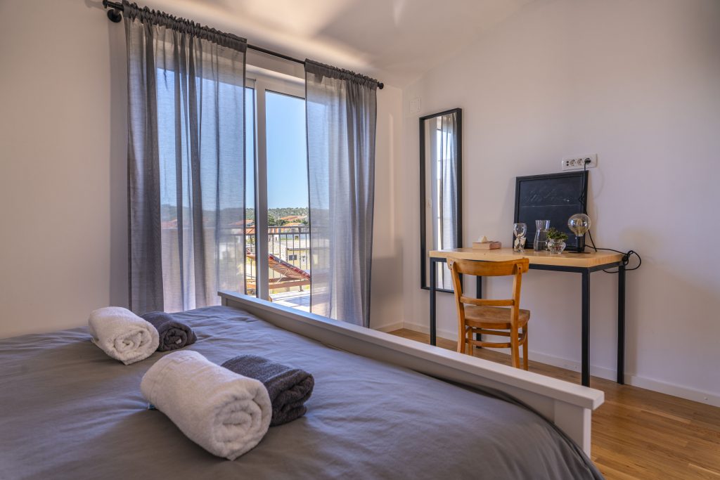 Smještajna jedinica s dvije spavaće sobe, pod nazivom Menta, smještena je na najvišoj jedinici našeg kompleksa, što bi značilo da vaši pogledi s balkona sežu u prekrasna prostranstva sve do plavoga mora. Kao što je začinska biljka menta popularna u svim krajevima svijeta, sigurni smo da će i naša Menta ostaviti dobar utisak na Vas te da ćete ju poželjeti iznova koristiti. Kao u mnogim ljetnim pićima, menta pruža osjećaj svježine, a naš smještaj, koji nosi isti naziv, odaje upravo takav dojam. Svježina, priroda, svjetlost, mir, čistoća, komfor i prostranstvo je sve ono što vežemo za našu Mentu i u čemu možete uživati. Spoj modernog i vintage za nas je savršena formula za ugodan osjećaj u privremenom domu. Udahnite pregršt dobrih osjećaja u našoj Menti i ponesite nezaboravna iskustva iz nje.